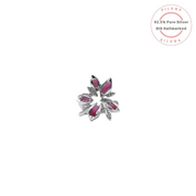 Unveil your inner blossom with this magnificent floral ring, a true statement of modern elegance. Sculpted petals, encrusted with marquise-cut stones in a deep ruby hue, unfurl around sparkling pavé accents. Meticulously crafted from pure 92.5% silver, this piece captures the dramatic beauty of a flower in full bloom.